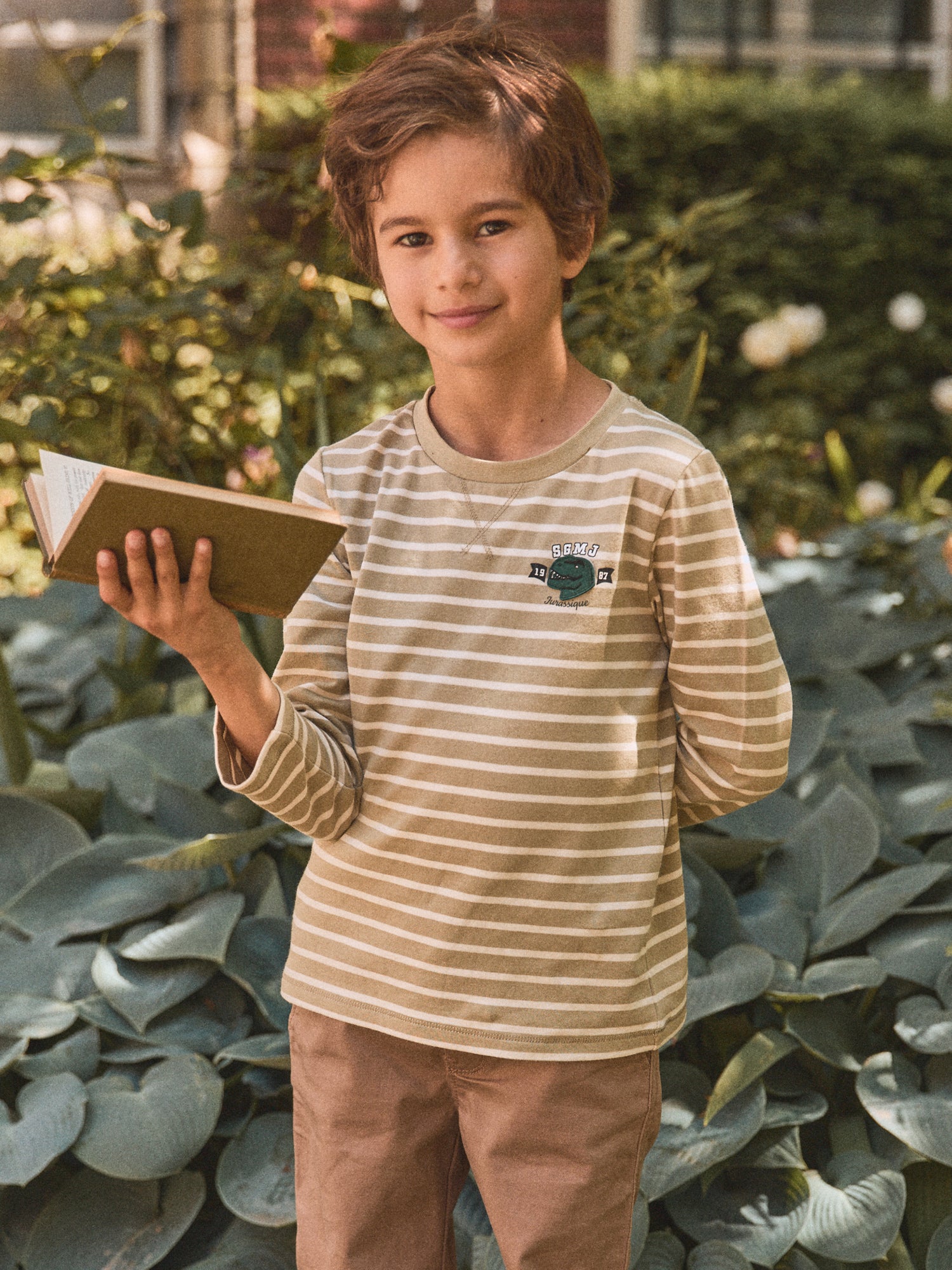 Grünes T-Shirt mit Streifen und langen Ärmeln für Jungen