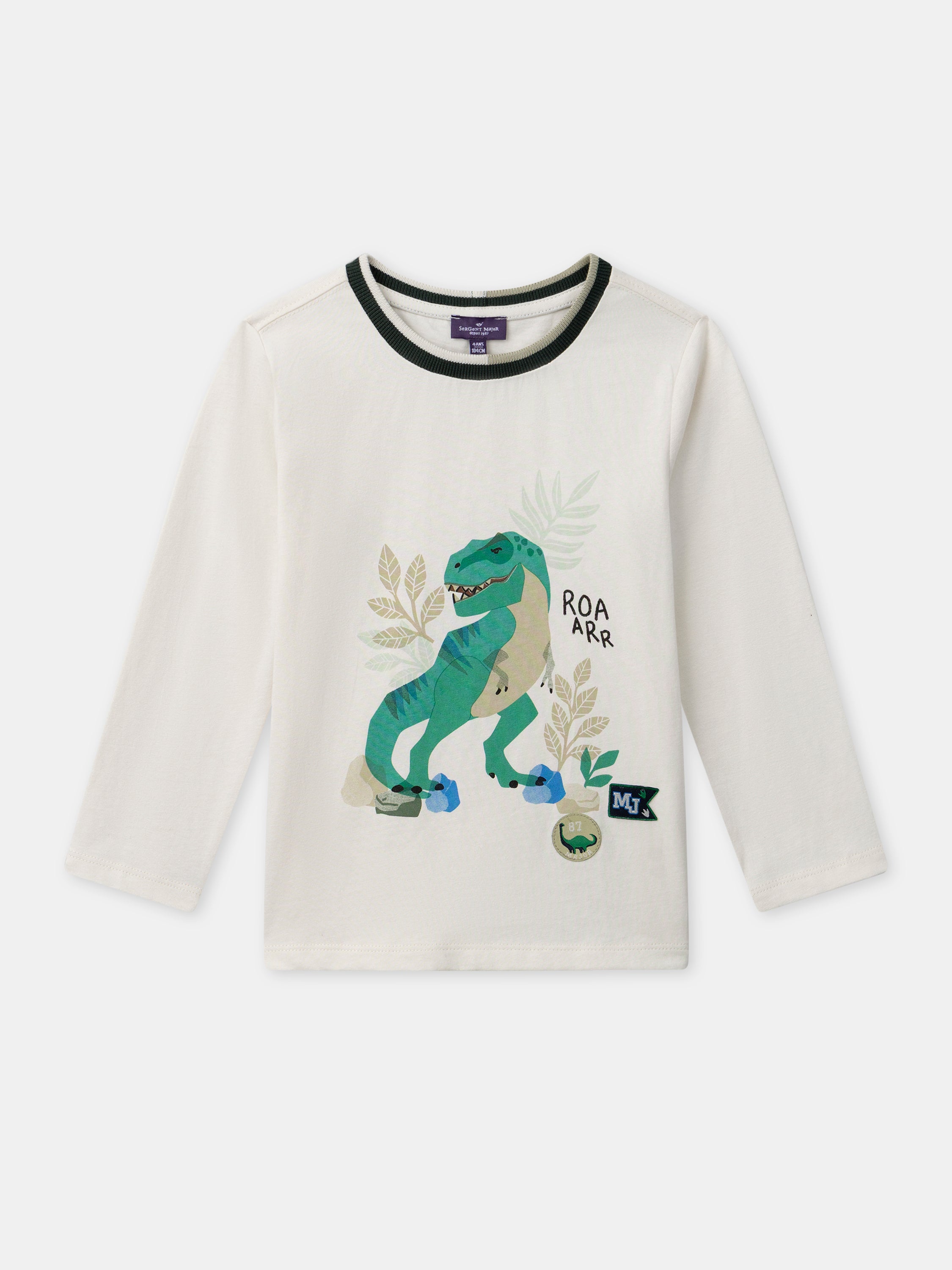 Ecru-T-Shirt mit Dinosaurierdruck und langen Ärmeln für Jungen