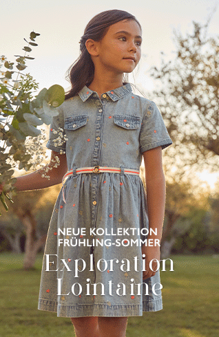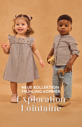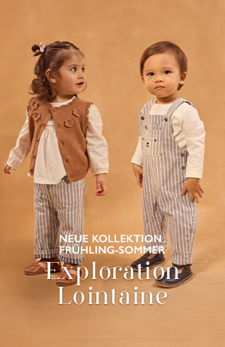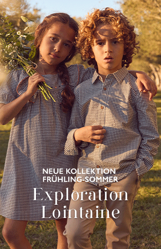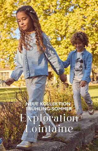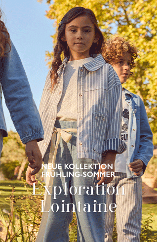 Beige, denim et fluo unissent la fratrie dans des looks coordonnés, du plus petit au plus grand.