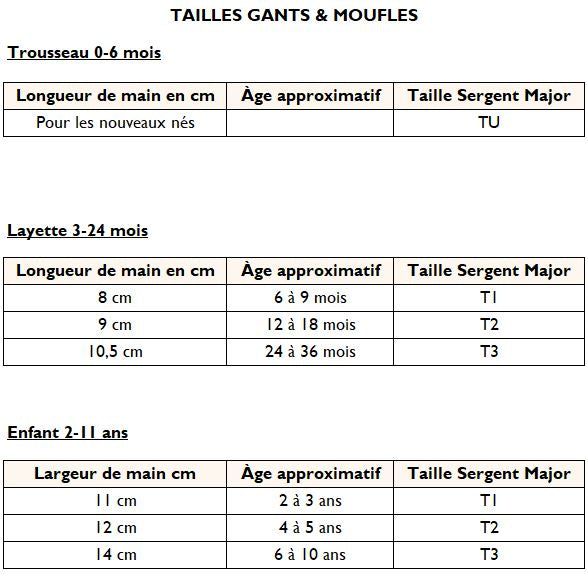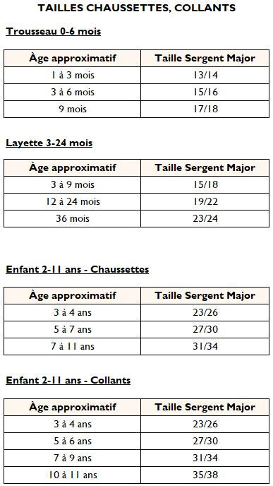 Chez Sergent Major, chaque enfant grandit à son rythme, et chaque taille raconte une étape de son histoire. Du 0 mois au 11 ans pour le prêt-à-porter et du 20 au 38 pour les chaussures, notre guide des taille est là pour les accompagner, pas à pas, dans leurs aventures.