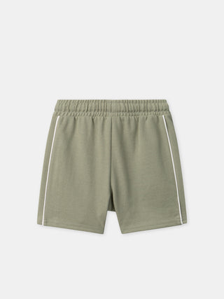 Pensé pour un enfant dynamique et curieux, ce bermuda se porte idéalement au printemps et en été. Confectionné en maille piquée majoritairement coton, il présente une coupe confortable avec une taille élastiquée et ajustable et deux poches avant pratiques. Ses détails blancs sur les côtés, son coloris vert frais et son étiquette tissée s’intègrent dans un univers sportif et décontracté pour accompagner les jeux du quotidien.