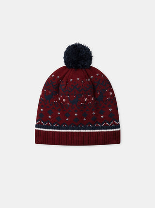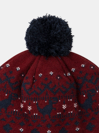 Bonnet bordeau à motif dinosaure avec ponpom Garçon
