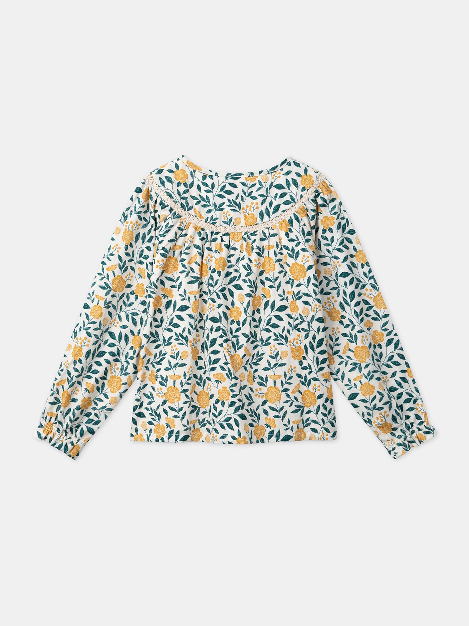 Ce chemisier à fleurs sur fond écru allie élégance et confort. Les motifs floraux apportent une touche de fraîcheur, tandis que les bas de manches élastiqués assurent un ajustement agréable. La doublure en coton offre douceur et confort tout au long de la journée.