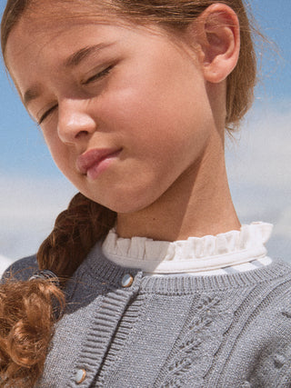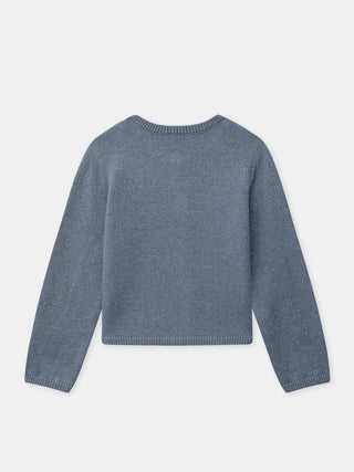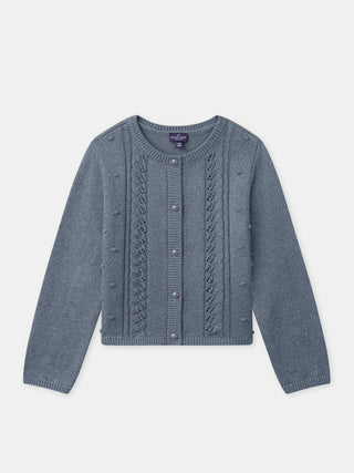 Dieser blaue Strickcardigan ist perfekt für aktive Kinder in der kalten Jahreszeit. Hergestellt aus metallischen Garnen und mit einem luftigen Strickdesign, bietet er Wärme und Komfort und bleibt dabei leicht. Die Knöpfe vorne ermöglichen einfaches Ankleiden und einen hellen Stil.