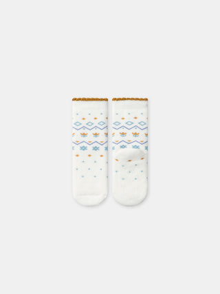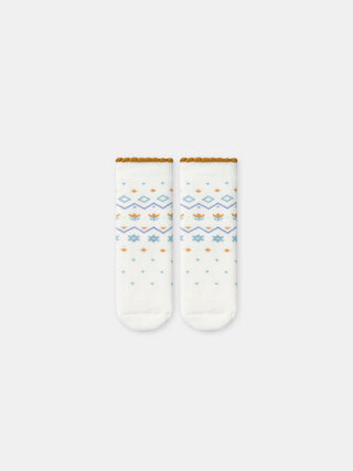 Ideal für aktive Kinder, bieten diese ecru Socken Komfort und Sicherheit. Sie haben fantasievolle Friesen mit Blumen und geometrischen Formen. Der braune Rib-Finish sorgt für einen angenehmen Halt.