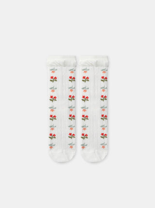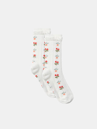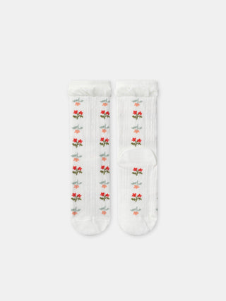 Cremefarbene Socken mit Blumen und Rüschen für Mädchen