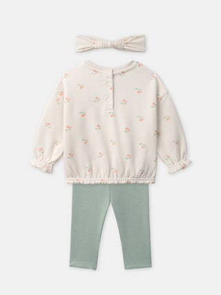 Ecru Sweatset + grüne Leggings + Haarband für Mädchen