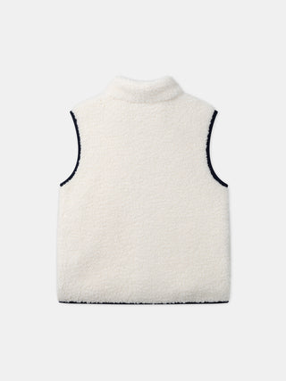 Diese Fleeceweste ist perfekt für Kinder bei kühlem Wetter. Das Innenfutter aus Fleece bietet Wärme und Komfort, ideal für kalte Tage. Sie hat eine Reißverschlusstasche auf der Brust mit einem Aufdruck, was eine verspielte und praktische Note hinzufügt. Die kontrastreichen Details in Marineblau sorgen für zusätzlichen Stil in diesem lässigen und funktionalen Stück.