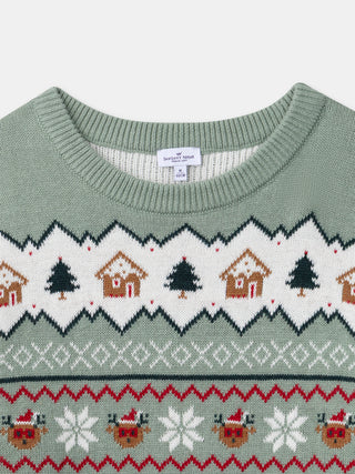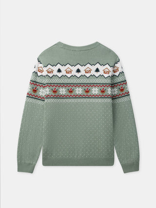Conçu pour les enfants énergiques et joyeux durant la saison froide, ce pull assure confort et liberté de mouvement. Maille douce avec bord côte au col, poignets et taille. Motifs jacquard festifs avec rennes, sapins et flocons pour accompagner les fêtes de Noël.