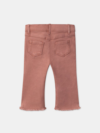 Diese ausgestellte Hose ist ideal für modische kleine Mädchen, perfekt für sonnige Tage. Sie ist mit einem elastischen Bund und einem Druckknopfverschluss für optimalen Komfort ausgestattet und hat vorne aufgesetzte Taschen mit gestickten Blumen. Der ausgefranste Saum verleiht dieser praktischen Hose einen trendigen, lässigen Look.