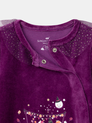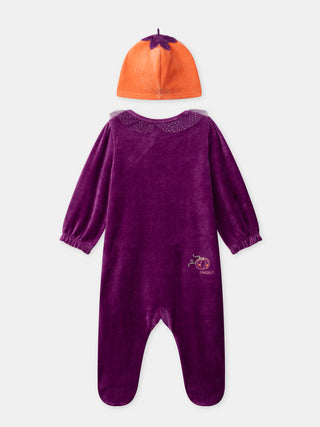 Grenouillère violette en velours + Bonnet citrouille Bébé Fille