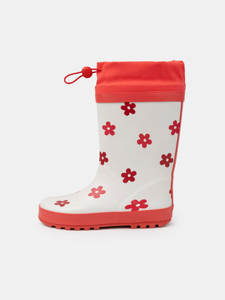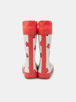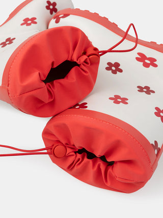 Weiße und rote Gummistiefel mit Blumendruck für Mädchen