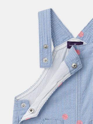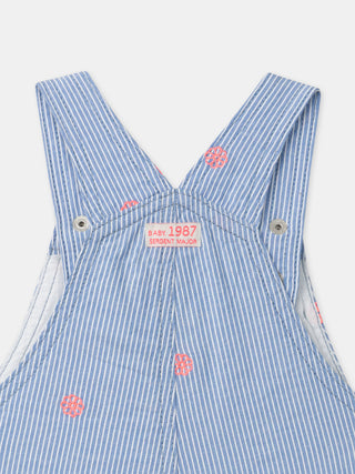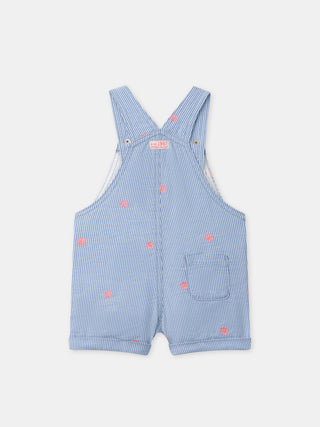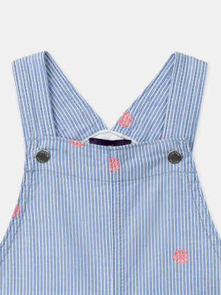 Salopette courte à rayures bleues et broderies fleurs Bébé Fille