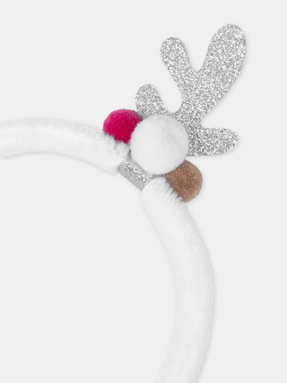 Gedacht für träumende Kinder, die den Winter und die Magie der Feiertage lieben. Hergestellt aus Kunstpelz, ist es bequem und leicht den ganzen Tag zu tragen. Seine glitzernden Ohren und bunten Pompons tauchen das Kind in eine zauberhafte Welt ein.